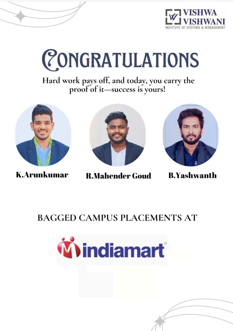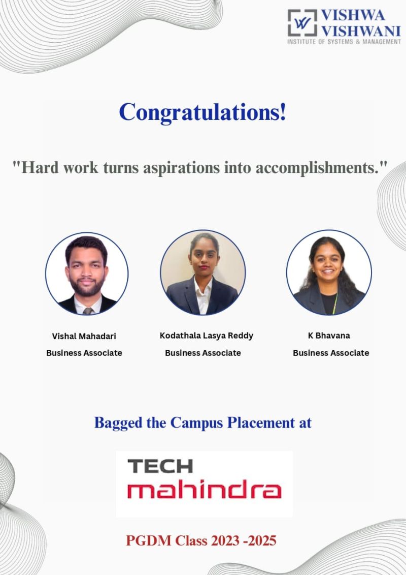 Phone Number: +91 9989139333, placements@vishwavishwani.ac.inHead-Placements and Corporate Relations & Assistant Professor - MBA